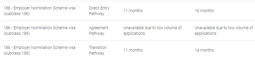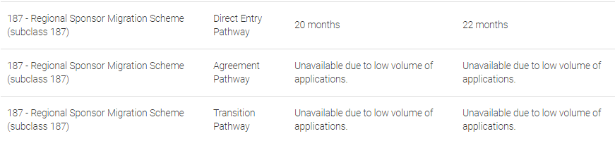 187簽證Direct Entry 分支審理速度比上個月快1個月,75%的申請可以在20個月內審理完成,90%的申請可以在22個月內審理完成。而Transition 分支由于申請數量少,無審理進度數據!