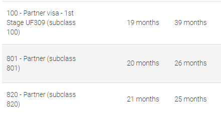 820/801簽證整體所需時間基本和上月保持一致。90%的801簽證需要26個月審理時間,90%的820簽證需要25個月審理時間。