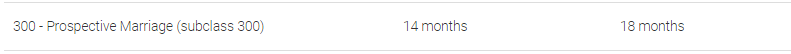 配偶移民300簽證審理和上個月基本一致,75%的申請需要14個月,90%申請需要18個月。