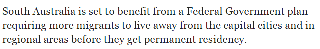 據(jù)報(bào)道,目前政府已經(jīng)在finalising“上山下鄉(xiāng)”簽證改革計(jì)劃,且南澳將從中受益,未來(lái)可能會(huì)吸引到更多新移民。