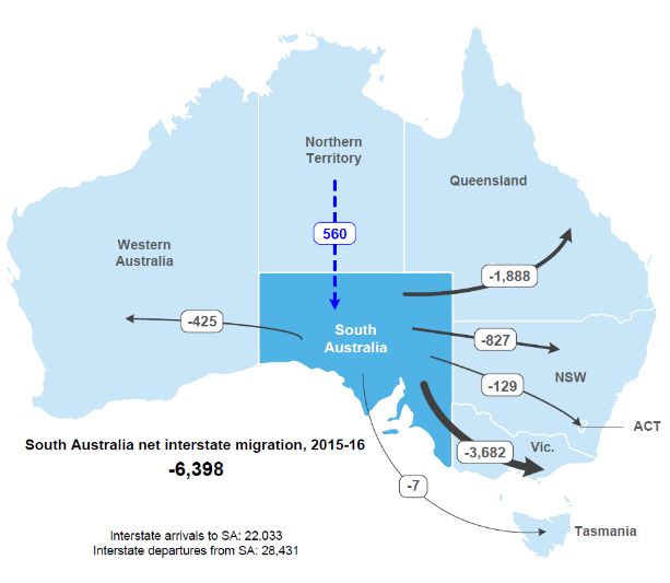 以2015-16財(cái)年為例,整個(gè)財(cái)年,22,033人遷入南澳,但與此同時(shí),更多人(28,431人)搬離南澳!