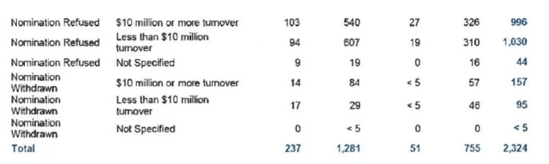 根據FOI報告顯示,在2018年8月14日-2018年12月31日期間,482簽證申請的第二步提名申請中,一共有2324個申請在4個月內宣告失敗,都是因為被拒絕、撤銷。