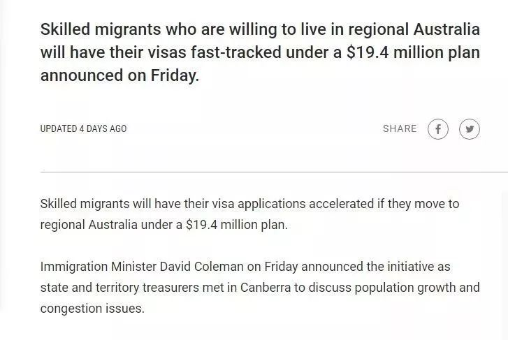 其實(shí),近日來政府對偏遠(yuǎn)地區(qū)的熱愛也是有增無減,尤其在2月8日,澳大利亞聯(lián)邦政府宣布一項(xiàng)新的移民計(jì)劃,澳邊遠(yuǎn)地區(qū)的技術(shù)移民簽證申請將得到更快速地處理。