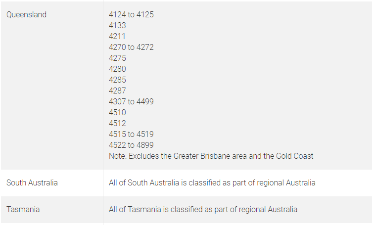 北領地,南澳和塔州全部都是指定地區。另外新州,昆州,維州和西澳的部分地區是指定地區。