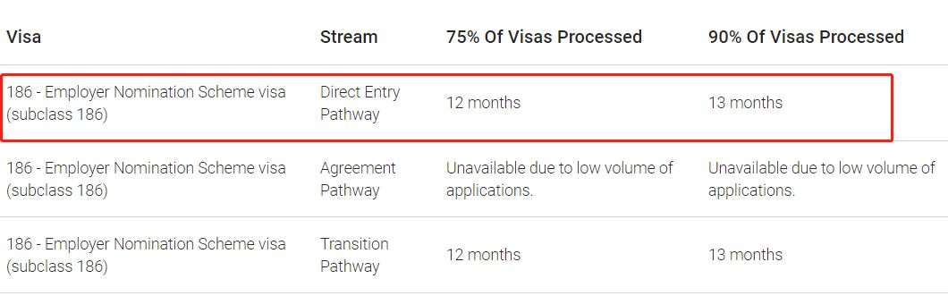 75%的一步到位186簽證需要審理12個月;90%的457轉186的簽證審理期為13個月