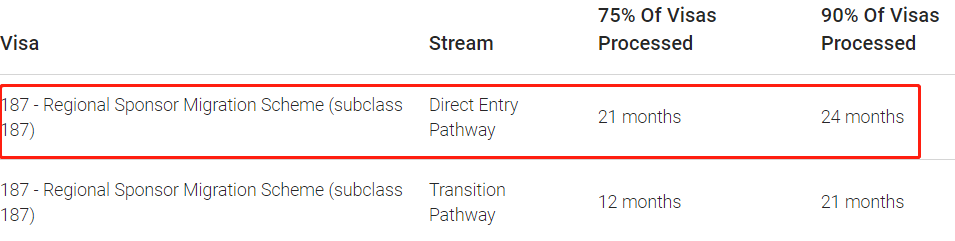 75%的一步到位187簽證需要審理21個月;90%的457轉187的簽證審理期為24個月
