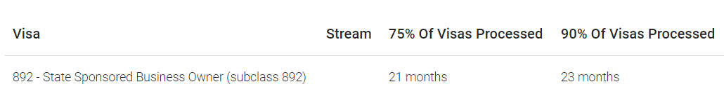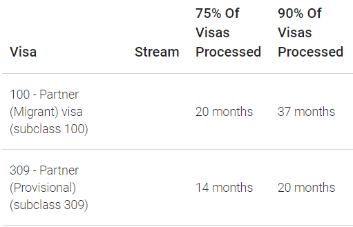 90%的100簽證審理期為37個月,90%的309簽證審理期為20個月
