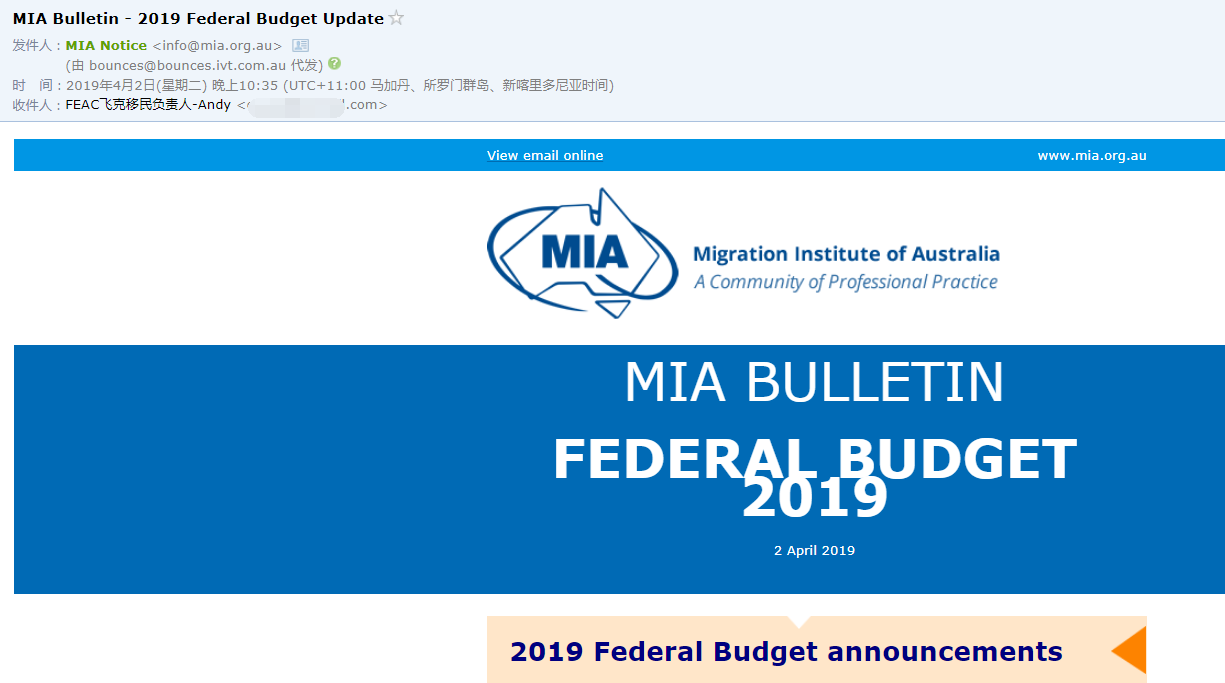 4月2號,澳洲政府正式發布了2019-20年度的財政預算案,并且披露了部分移民信息,同時,我們也從澳洲移民協會(MIA)來信中證實了這些信息。