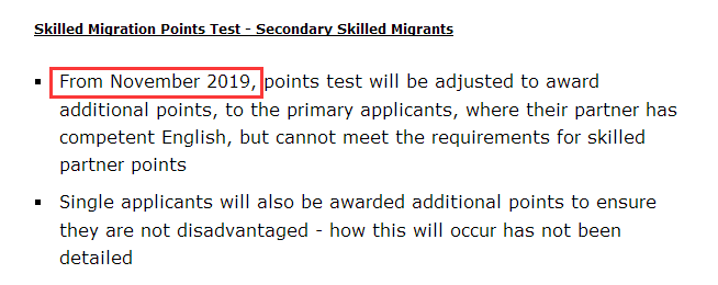 目前的加分規則是:配偶英文達到competent+提名職業與主申在同類清單上且通過職業評估+年齡45歲以下。