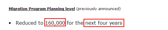 2. 接下來的4年移民配額都會是16萬。