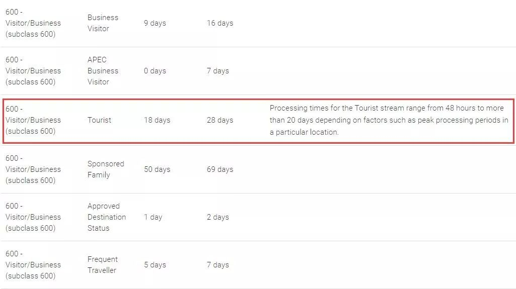 大部分人會申請的600旅游簽證,75%的審理期需要18天,90%的審理期需要28天。幾乎與上個月持平。