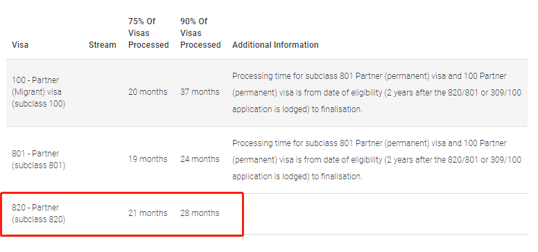 境內配偶820簽證:75%的審理時間依然是要21個月,90%的審理時間需要28個月。