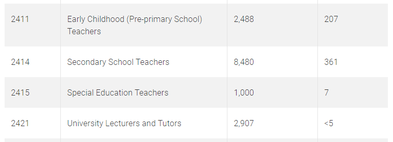 2411幼兒教育教師、2414中學教師、2415特殊教育教師類職業在技術移民MLTSSL表,可申請189獨立技術移民,2412小學教師和2413中學教師類職業在技術移民STSOL表可申請190州政府擔保移民。