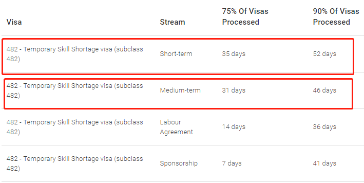 482中長期簽證: 75%需要等待31天,90%需要等待46天。