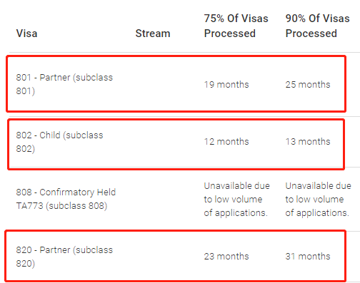 820簽證:75%的審理期為23個月;90%需要等待31個月。