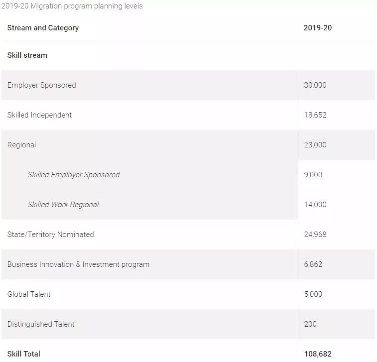 原本2017-2018財年,189、190、489占用的配額為68111。從2019-2020財年開始,偏遠地區(qū)類別將占用23000名額(原本為8534),雇主擔(dān)保類別名額增加3472,也就是說雇主擔(dān)保有高達30,000個配額,而偏遠地區(qū)雇主擔(dān)保494簽證又給了9,000個。