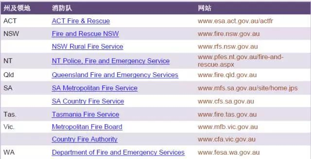 有關叢林火災,及如何做防火準備的更多信息,請聯系上文表列出的州或領地消防隊服務部。