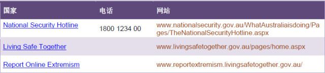 澳大利亞致力于防止暴力極端主義。暴力極端主義使用或支持以暴力達到他們的意識型態、宗教信仰或政治目的。每個人對暴力極端主義的威協提高警覺并多加了解,就能對澳大利亞的國家安全作出貢獻。