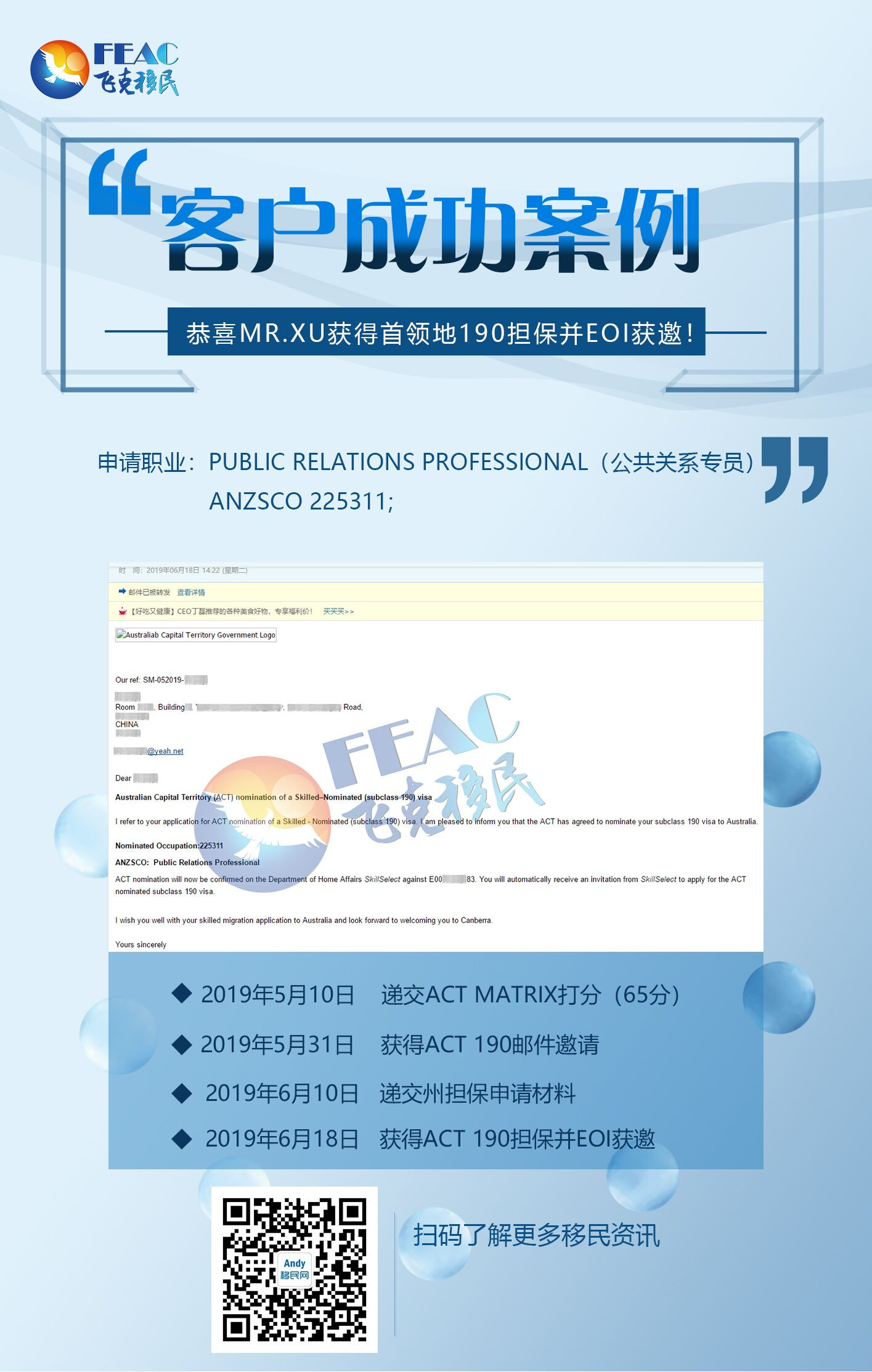 雖然本財(cái)年堪培拉Matrix這套邀請系統(tǒng)還不大完善,有些人甚至不太了解。但是確實(shí)有不少客戶在飛克的幫助下通過這個系統(tǒng)遞交成功并拿到了190州擔(dān)保。我們飛克專業(yè)的文案團(tuán)隊(duì)了解ACT的申請體系與邀請機(jī)制,如果有對堪培拉感興趣的朋友們可以聯(lián)系飛克,了解我們的成功案例。新財(cái)年即將到來,相信ACT政府也在緊急籌備新政當(dāng)中,通過這一財(cái)年的實(shí)際操作情況,相信他們對于自己的這套邀請體系也更加了解。新財(cái)年相信他們會有所改進(jìn),完善系統(tǒng),讓申請人更容易申請。