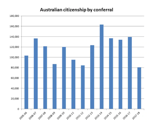 綜合澳大利亞媒體近日?qǐng)?bào)道,聯(lián)邦移民部長(zhǎng)科爾曼(David Coleman)近日表示,2018年7月1日至2019年5月31日,已獲批準(zhǔn)通過公民身份的申請(qǐng)超過13.2萬份,高于2018年同期的7萬份,增長(zhǎng)比例高達(dá)88%。