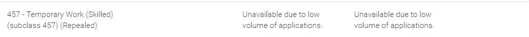 經(jīng)歷了一場變革的457雇主擔(dān)保簽證,由于申請的人太少,沒有數(shù)據(jù)。