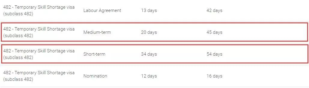 482中長期簽證:75%的審理期需要20天,90%需要審理45天;