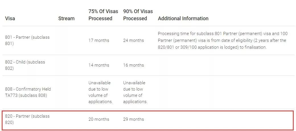 境內(nèi)配偶820簽證:75%的審理時間依然是要20個月,90%的審理時間需要29個月。