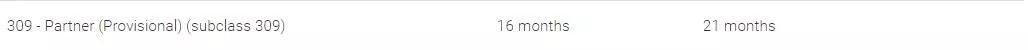 境外配偶309簽證:75%的審理期為16個月;90%的審理期為21個月;