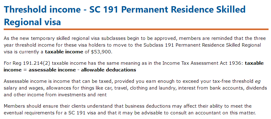 根據澳洲移民協會MIA最新確認的消息,轉191永居中的taxable income定義將與Income Tax Assessment Act 1936相同,即: