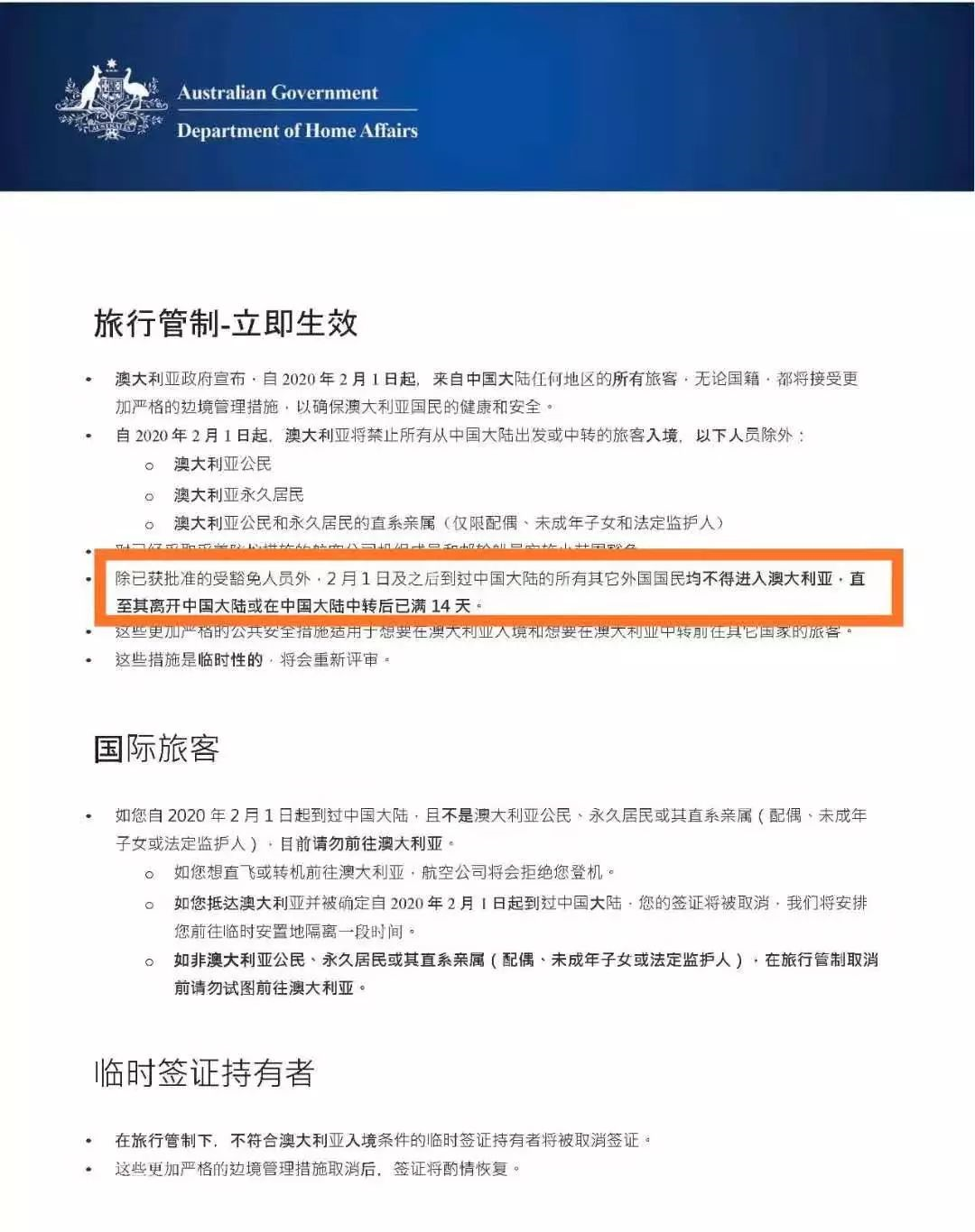 移民局的最新文件也表明,在離開大陸14天后可以入境澳洲。