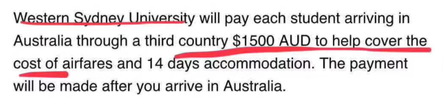 昨天,西悉尼大學宣布將向那些第三國返澳的學生發(fā)放$1500的補助,以幫助他們負擔一部分額外的旅行開支這一做法贏得了學生的稱贊,認為學校這種舉動非常的人性化。