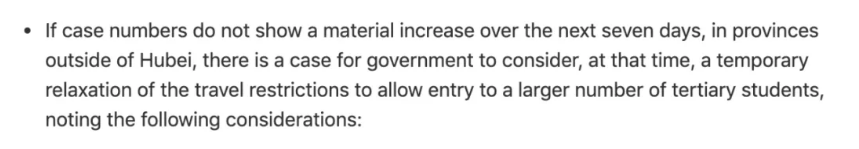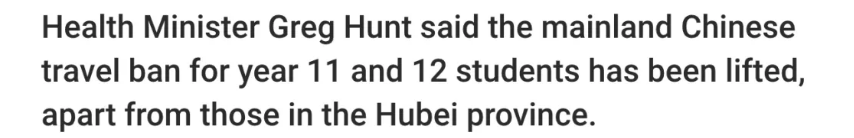 也就是說,如果近期湖北以外沒有明顯增長,那么澳洲政府將很有可能放寬學生入境限制!
