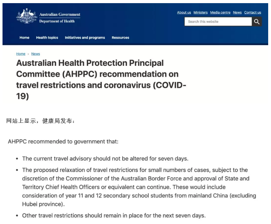 此前,2月20日,澳大利亞健康局官網上發布的消息,給了留學生們返校的希望。
