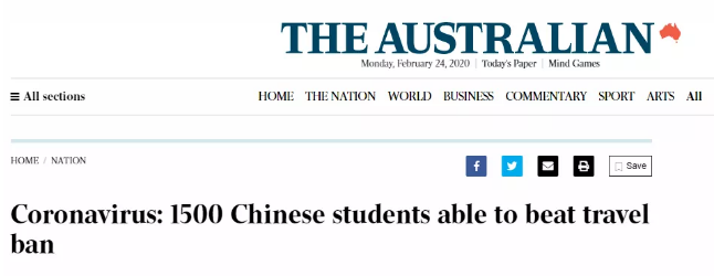雖然中國和澳洲之間仍然禁止除了澳洲公民和永久居民直接返回澳洲,但政府在周末宣布放寬對澳大利亞學校11年級和12年級入學的中國學生的限制,除湖北省以外,其他學生可以入境澳洲。