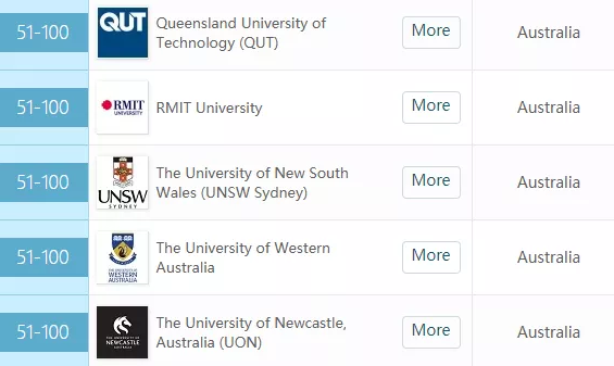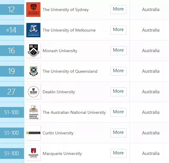 在QS世界大學專業排名榜單中,澳洲大學的教育專業有4所進入世界前20名,其中悉尼大學#12,墨爾本大學#14,蒙納士大學#16,昆士蘭大學#19,迪肯大學#27緊追其后,另有多所澳洲院校教育專業進入世界高校專業排名前100榜單。