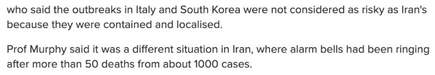 在意大利和韓國爆發(fā)的疫情不像伊朗那樣具有危險性,因為它們已被控制并被本地化,所以目前僅僅新增了針對伊朗的Taval Ban