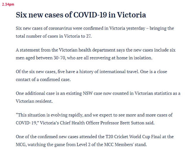維州從昨日至今,累計確診6例,年齡在30-70歲之間,其中5例有旅行史,另一例為新州已經(jīng)確診病例,但實(shí)為維州居民。