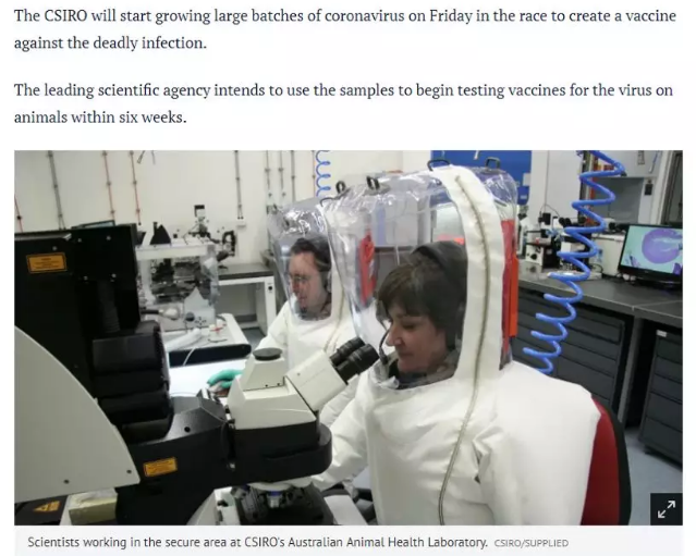 第二天就將病毒毒株送往Geelong的CSIRO實驗室進行培育,預計在六周內將這些病原體樣本在動物身上進行病毒疫苗測試。