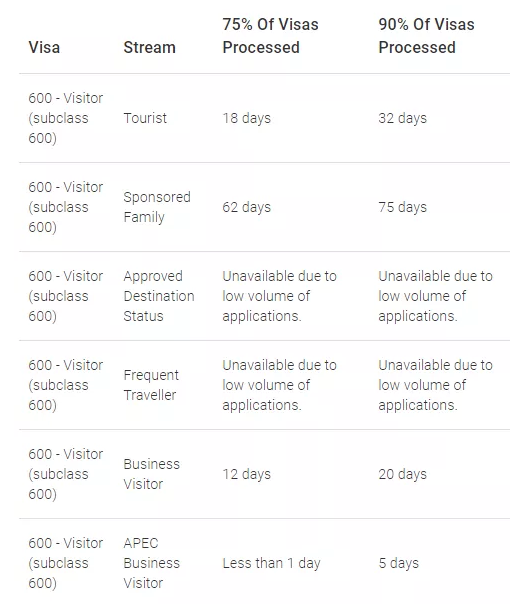 大部分人會申請的600旅游簽證,75%的審理期僅需18天;90%的審理需要31天。