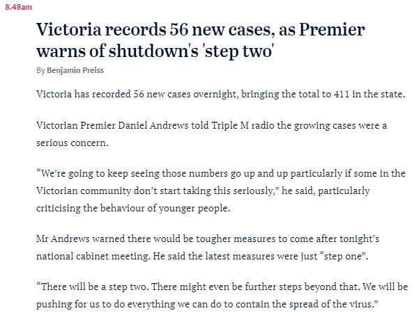 安德魯斯警告稱,在今晚的全國內閣會議后,將會出臺更嚴厲的措施。他表示,最新的措施只是“第一步”。