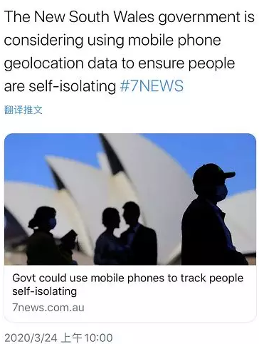 7news報道:新州政府正在考慮使用手機定位數據來確保民眾遵守自我隔離要求。新州警察部長David Elliott今早稱“我們已經就監視人們的手機進行了初步的討論”。