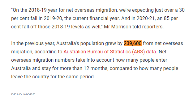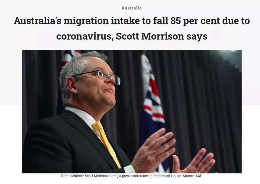 上周五,莫里森在發(fā)布會上表示:“在2019年至2020年期間,海外凈移民人數(shù)將比2018年至2019年下降30%!預計到2020-21年,這一數(shù)字將較2018-19年下降85%!”