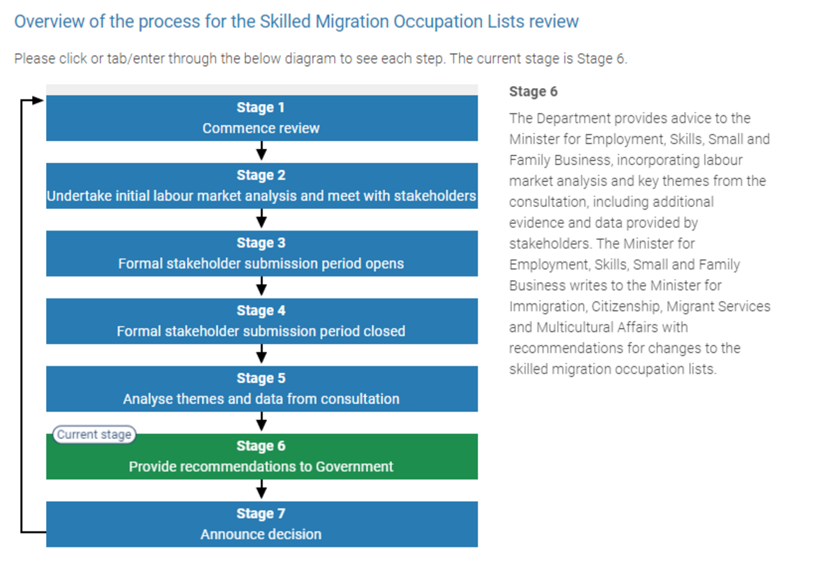 根據(jù)上圖可以看到,目前這個移民職業(yè)清單審核已經(jīng)在倒數(shù)第二個階段了,移民局已將建議提供給Minister for Employment, Skills, Small and Family Business。一旦通過即可發(fā)布啦~