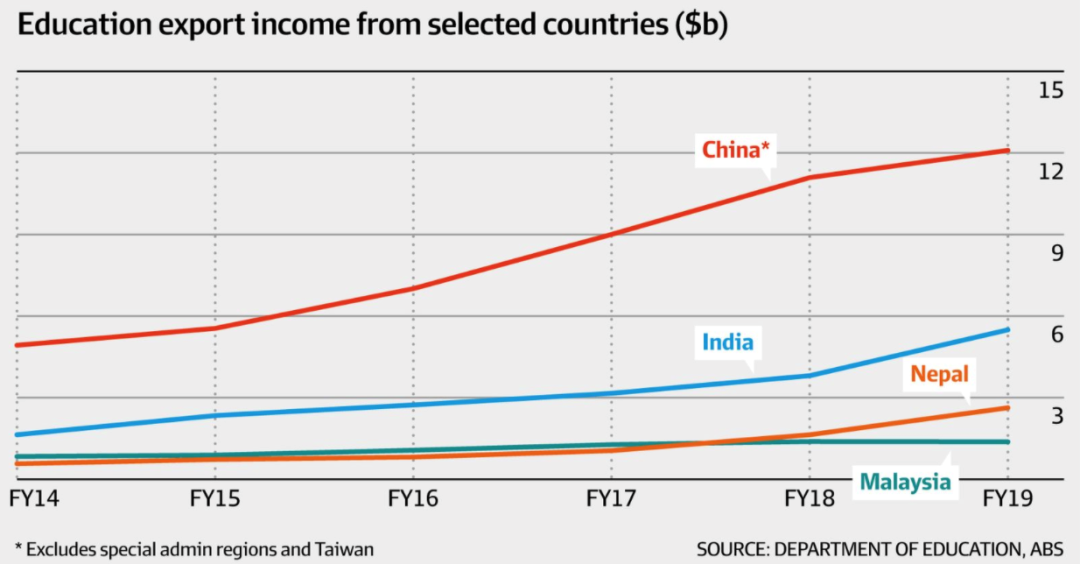 據(jù)悉,在2018年至2019年期間,澳大利亞大學(xué)從中國學(xué)生那里獲得了120億澳元的收入。