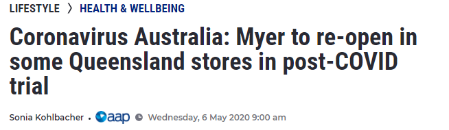 根據(jù)7News的報道,后天開始,澳洲百貨公司Myer的昆州5家門店將率先恢復(fù)營業(yè)!