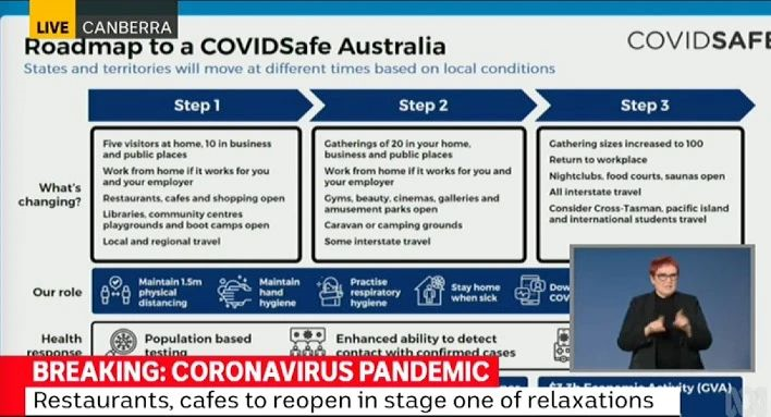 澳總理莫里森于澳洲東部時(shí)間5月8日中午12:30宣布了解封消息: