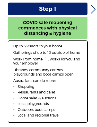 “我們有效地控制了新冠病毒疫情的蔓延,并為維持澳洲經(jīng)濟(jì)做出了努力,今天我們將繼續(xù)前行,下一階段我們將齊心協(xié)力讓澳洲的經(jīng)濟(jì)重回正軌。