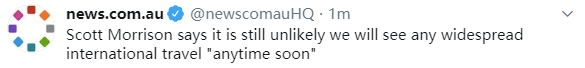 莫里森也表示:國(guó)際旅行禁令不會(huì)短時(shí)間內(nèi)取消。