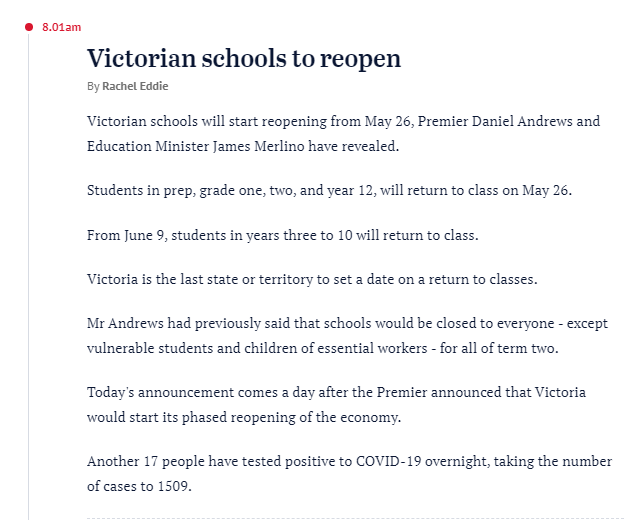 州長安德魯做出重磅宣布:維州學生5月26日起開始返校!