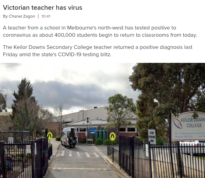 上周五,位于墨爾本西北部的Keilor Downs Secondary College的一名老師新冠病毒檢測結(jié)果呈陽性。